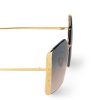 A new take on the LV Moon signature, the LV Moon Metal Square sunglasses bring a fashion-forward spirit to a classic lens shape. The sleek rimless design features gold-tone metal side attachments finely engraved with the LV Initials and Monogram Flowers, modeled after the chain of the House’s iconic Coussin handbag. A sophisticated way to frame the face with a rich yet subtle signature look.