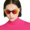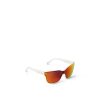 LV Shadow Square sunglasses offer a futuristic look. Reminiscent of the LV Snow ski goggles, the sleek and sporty shape is complemented by a striking mirror lens. Polished Monogram Flowers appear at the end pieces, temples and tips, while a pointed version provides a discreet detail behind the bridge.