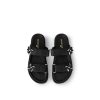 The edition of the LV Sunset flat comfort mule is part of the Summer Holiday collection. Its two adjustable velcro straps come in soft calf leather, which is delicately perforated with the Monogram pattern. The straps are embellished with leather Monogram Flower accessories, which bring a sophisticated twist to this relaxed style.