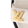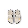 The LV Sunset flat comfort sandal is crafted from supple, grained calf leather. This on-trend, easy-to-wear style is notable for its two lightly padded straps, which are adjusted with velcro, and its comfortable anatomic footbed. The front strap is embellished with an LV Twist accessory in gold-tone metal.