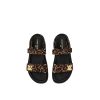 The LV Sunset flat comfort sandal is revisited this season in hairy calf leather printed with a leopard motif. It brings a touch of glamour to this easy-to-wear style, which features two velcro straps, a comfortable anatomic insole and a lightweight micro outsole. The front strap is signed with a gold-tone LV Twist accessory.