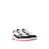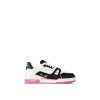 The LV Trainer sneaker is reinterpreted for women in grained calf leather and a black and white palette with flashes of color. This cult model, referencing vintage basketball sneakers, was originally designed for men by Virgil Abloh. The richly detailed upper features the Louis Vuitton script signature and #54, referring to 1854, when the House was founded.