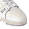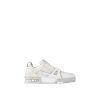 An emblem of the Men’s collection, this LV Trainer sneaker has been redesigned for women. Created by Virgil Abloh, this classic shoe is inspired by vintage basketball models. This monochrome version of the LV Trainer sneaker mixes grained calf leather and smooth leather. The #54 inscription on the back refers to the date 1854, the year the Maison was founded.