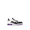 The LV Trainer sneaker is reinterpreted for women in grained calf leather and a black and white palette with flashes of color. This cult model, referencing vintage basketball sneakers, was originally designed for men by Virgil Abloh. The richly detailed upper features the Louis Vuitton script signature and #54, referring to 1854, when the House was founded.