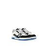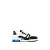 The LV Trainer sneaker is reinterpreted for women in grained calf leather and a black and white palette with flashes of color. This cult model, referencing vintage basketball sneakers, was originally designed for men by Virgil Abloh. The richly detailed upper features the Louis Vuitton script signature and #54, referring to 1854, when the House was founded.