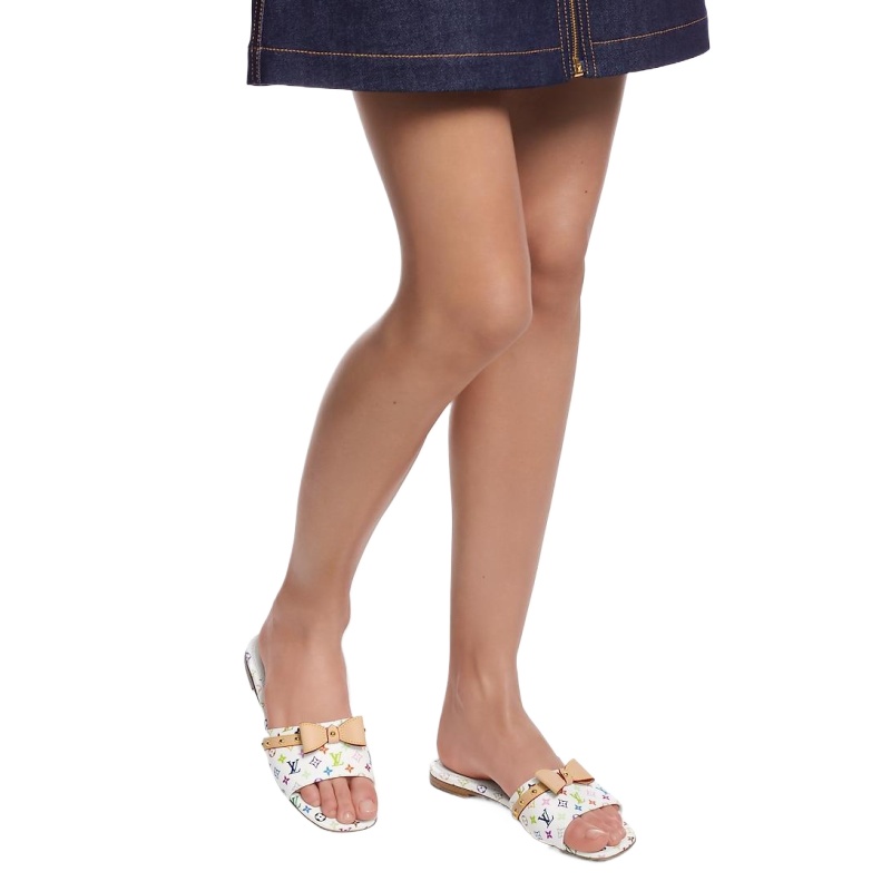 Chic and cheerful, the 6AM flat mule is signed all over with the iconic Monogram motif in upbeat rainbow tones as part of the re-edition of the Louis Vuitton x Murakami collection, which reimagines the House’s timeless signature with Japanese artist Takashi Murakami’s renowned vibrant aesthetic. The strap is detailed with studded bands of natural cowhide leather and trimmed with bows for a final flourish.