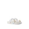 A staple style elevated with a spirited signature: the Bom Dia flat comfort mule is distinguished by two straps in Monogram coated canvas that has been playfully reimagined in bold rainbow tones as part of the re-edition of the Louis Vuitton x Murakami collection. One is effortlessly adjusted with velcro while the other is fastened with a gleaming gold-toned buckle. An anatomic insole and slip-resistant outsole complete the casual, comfortable design.