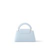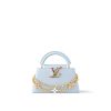 Joyful codes from the re-edition of the Louis Vuitton x Murakami elevate the Capucines East-West handbag into a spirited statement. Takashi Murakami’s vernacular rainbow palette informs the soft blue shade of the Taurillon leather, while the emblematic LV Initials on the front and Monogram Flower accents on the chain are playfully reimagined in the artist’s signature superflat style.