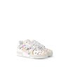 The iconic LV Trainer sneaker makes a fresh statement in grained calf leather featuring an allover print of a multicolored Monogram motif from the re-edition of the Louis Vuitton x Murakami collection, inspired by the artist’s exuberant aesthetic. Informed by vintage sporty styles, the upper is detailed with a cursive Louis Vuitton signature, while the back is printed with the number 54 in reference to 1854, the year the House was founded.