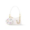 Twisting elegance with edge, the Marellini is crafted from the House’s richly textured Epi leather in bijou proportions big enough to fit daily essentials, including a large smartphone. Rebellious chunky golden chains secure a round coin purse and a mirror to the outside, both of which strike a playful contrast in the Louis Vuitton x Murakami collection's multicolored Monogram canvas.
