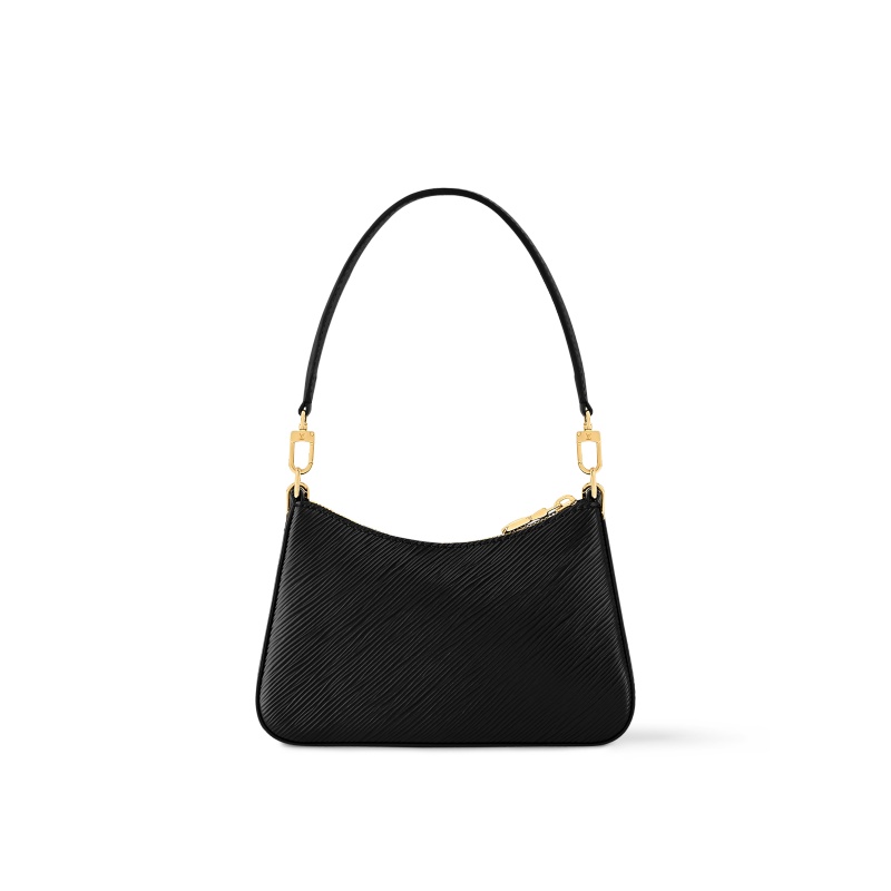 Twisting elegance with edge, the Marellini is crafted from the House’s richly textured Epi leather in bijou proportions big enough to fit daily essentials, including a large smartphone. Rebellious chunky golden chains secure a round coin purse and a mirror to the outside, both of which strike a playful contrast in the Louis Vuitton x Murakami collection’s multicolored Monogram canvas.