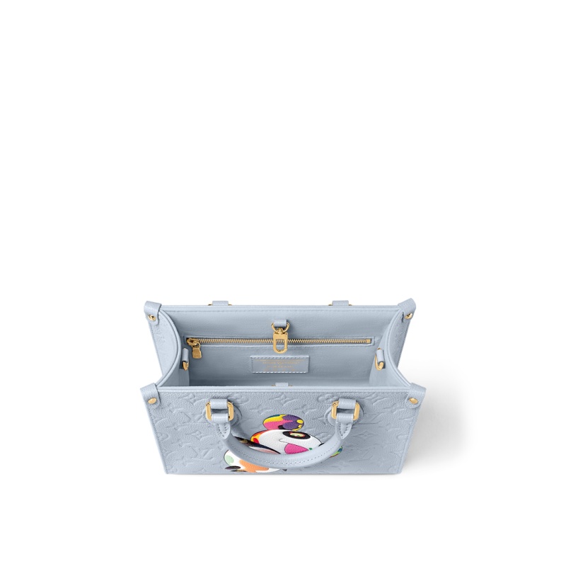 The House’s classic OnTheGo PM handbag is uplifted with detailing from the cross-category Louis Vuitton x Murakami collection. Crafted from Monogram Empreinte leather in a soft blue shade, it is playfully embellished on both sides with a superflat Panda character from the artist’s universe, detailed with subtle Monogram Flower accents. Complete with chic golden hardware, including a removable chain attachment for versatile carry options.