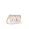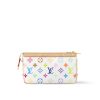 This playful edition of the classic Pochette Accessoires is joyfully reimagined with a multicolored Monogram motif as part of the cross-category Louis Vuitton x Murakami collection. Crafted from coated canvas in a petite pouch shape, a natural cowhide-leather trim adds an emblematic House touch, while golden hardware introduces a chic polished accent. Complete with a removable strap and chain for versatile styling options.
