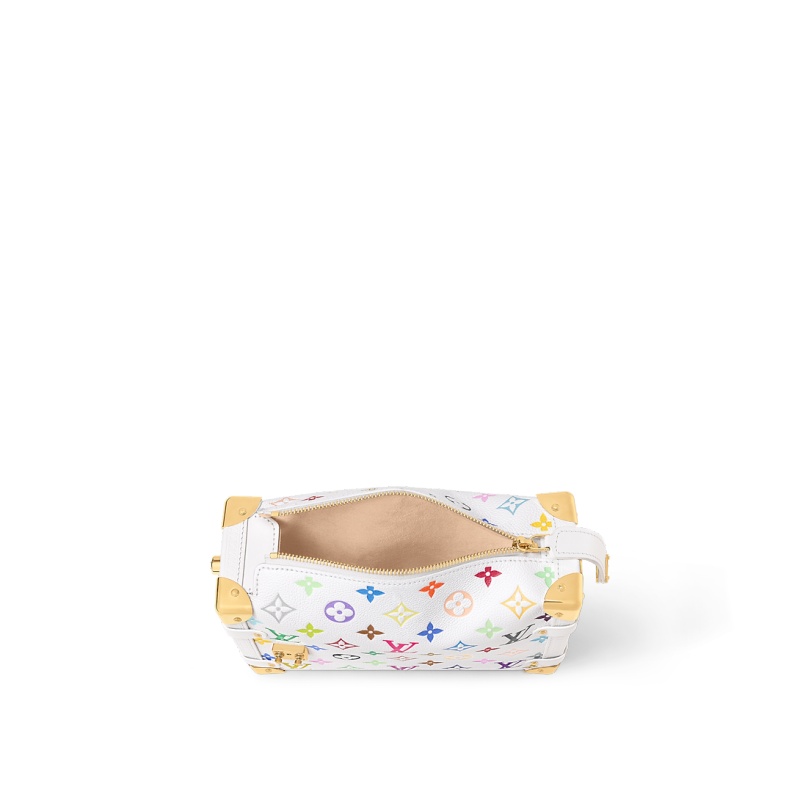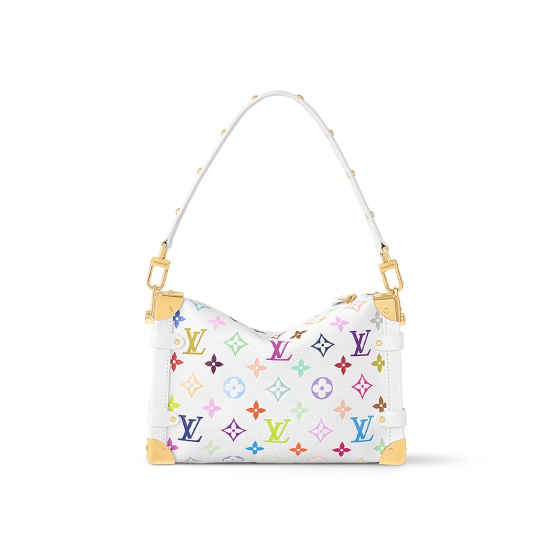 The iconic Side Trunk MM makes a spirited everyday statement in a playful version of the Monogram motif from the re-edition of the Louis Vuitton x Murakami collection. Crafted from supple cowhide, the rectangular silhouette pays homage to the House’s archival luggage complete with golden reinforced corners and an emblematic S-lock closure. The removable handle embellished with studs and strap offer versatile carry options, while the inside is large enough to stow daily essentials.