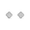 Magic Alhambra earrings, rhodium plated 18K white gold, round diamonds; diamond quality DEF, IF to VVS.