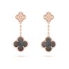 Magic Alhambra earrings, 2 motifs, 18K rose gold, gray mother-of-pearl, round diamonds; diamond quality DEF, IF to VVS.