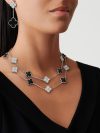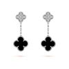 Magic Alhambra earrings, 2 motifs, rhodium plated 18K white gold, onyx, round diamonds; diamond quality DEF, IF to VVS.