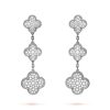 Magic Alhambra earrings, 3 motifs, rhodium plated 18K white gold, round diamonds; diamond quality DEF, IF to VVS.