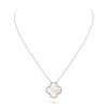 Magic Alhambra pendant, rhodium plated 18K white gold, white mother-of-pearl.The pendant is attached to the necklace’s chain