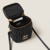 Fine matelassé workmanship gives this nappa leather micro bag a compact and modern look thanks to the three-dimensional, textured, and extremely sophisticated effect. The Miu Miu logo stands out with an iconic and instantly recognizable touch.