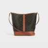 MEDIUM BUCKET BAG IN TRIOMPHE CANVAS WITH AN ADJUSTABLE LEATHER SHOULDER STRAP AND AN INTERIOR SNAP BUTTON CLOSURE.