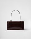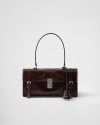 Inspired by rigid and formal work bags, this leather bag with a delicate glossy finish reinterprets classic office silhouettes with a new attitude. The archetypal shape is softened and enriched with sophisticated, feminine details. The vertical clasp, taken from the archives, embellishes the accessory characterized by a long handle that can also be worn over the shoulder.