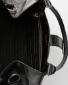Geometric lines and refined artisan details define this bag with soft volumes. The trapezoidal silhouette features elongated handles to be worn with ease also as a shoulder bag. The vertical clasp inspired by the archives and the leather mirror complete the accessory with a sophisticated note.
