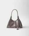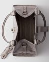 Geometric lines and refined artisan details define this bag with soft volumes. The trapezoidal silhouette features elongated handles to be worn with ease also as a shoulder bag. The vertical clasp inspired by the archives and the leather mirror complete the accessory with a sophisticated note.