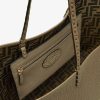 Medium shopper bag, created in 1997 together with the Baguette and designed to partner it. A functional, timeless carry-all, it is the perfect combination of practicality and refined details. Made with 218 hand-sewn tone-on-tone macro topstitches, an emblem of the iconic Selleria workmanship handed down through generations of Fendi artisans since 1925. Made of green Cuoio Romano leather, calfskin with a characteristic natural grain produced with a metal-free tanning process. Featuring an interior compartment lined in jacquard fabric with the iconic brown FF motif, a Cuoio Romano leather internal zipper pocket with leather Selleria stamp and gold-finish metalware. It can be carried by hand or worn on the shoulder thanks to the Cuoio Romano leather handles embellished with macro hand stitching.