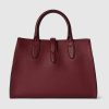 This medium tote design continues to feature the snap hook closure, first introduced in the Spring Summer 2024. The sophisticated leather in Gucci Rosso Ancora red has a distinctive natural grain. The top handle bag’s open compartment has a hook closure strap, and comes with a detachable and adjustable shoulder strap.