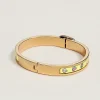 Like a reverse creation, a Hermès bracelet is perfectly presented in three steps. 1. Slide the bracelet deftly onto your wrist. 2. Gently close the clasp. 3. Rotate the clasp. Click, the creation is complete!