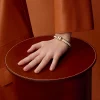 Like a reverse creation, a Hermès bracelet is perfectly presented in three steps. 1. Slide the bracelet deftly onto your wrist. 2. Gently close the clasp. 3. Rotate the clasp. Click, the creation is complete!