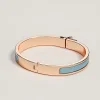 Like a reverse creation, a Hermès bracelet is perfectly presented in three steps. 1. Slide the bracelet deftly onto your wrist. 2. Gently close the clasp. 3. Rotate the clasp. Click, the creation is complete!
