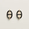 Lacquered metal earrings. The Mini Maillon collection captures the iconic Chaine d'Ancre clasp, echoing the nautical style of Hermès. A jewel for everyday wear, available in a wide range of colors and styles, to be worn alone or stacked. Made in France. Metal texture: Cold gold plated Length: 2 cm | Width: 1.2 cm | Weight of a single earring: 4 grams