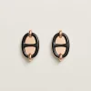 Lacquered metal earrings. The Mini Maillon collection captures the iconic Chaine d'Ancre clasp, echoing the nautical style of Hermès. A jewel for everyday wear, available in a wide range of colors and styles, to be worn alone or stacked. Made in France. Metal texture: Rose gold plated Length: 2 cm | Width: 1.2 cm | Weight of a single earring: 4 grams