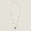 Pendant in lacquered metal. The elegant curves of the classic "Pop H" collection are reinterpreted in a mini version. Made in France. Metal: Yellow gold plated Total chain length: 40 cm | Pendant dimensions: 0.9 cm x 0.7 cm