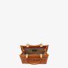 Sunshine Shopper in a new squarer and more spacious size, made of brown leather with a hot-stamped “FENDI ROMA” and tone-on-tone leather tubular handles. Features a lined internal compartment, tone-on-tone leather edges and gold-finish metalware. The bag can be carried by hand, at the elbow or worn cross-body thanks to the two long handles and the adjustable, detachable slim shoulder strap. Holds a 6.7-inch smartphone, Mini Trifold card holder or wallet, keys and lipstick.