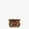 Sunshine shopper in a new squarer and more spacious mini size, made of fabric with a jacquard FF motif in brown with beige tubular leather handles. Features a lined internal compartment, edges in beige leather, and gold-finish metalware. The bag can be carried by hand, at the elbow or worn cross-body thanks to the two long handles and the adjustable, detachable slim shoulder strap. Holds a 6.7-inch smartphone, Mini Trifold card holder or wallet, keys and lipstick.