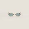 Metal sunglasses with a glamorous touch. The irregular front is outlined by refined thin rims and combined with sleek temples decorated with the iconic vertical Miu Miu logo.