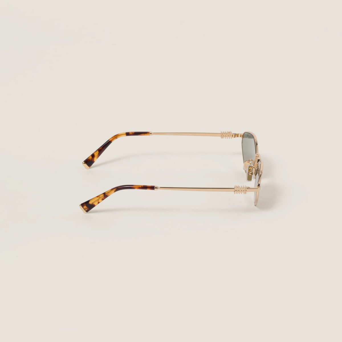 Metal sunglasses with a glamorous touch. The irregular front is outlined by refined thin rims and combined with sleek temples decorated with the iconic vertical Miu Miu logo.