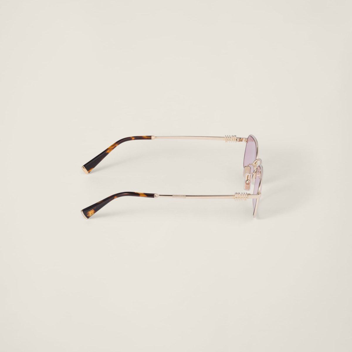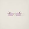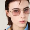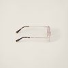 Miu Miu sunglasses reinterpret the classics with a touch of glamour. The metal frame features square lenses highlighted by the thin rims. The vertical Miu Miu logo decorates the ultra-thin temples.