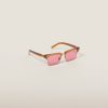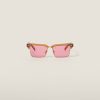Iconic square sunglasses renewed with a modern touch. The acetate and metal frame is emphasized by captivating summery shades. The vertical Miu Miu logo decorates the straight temples.