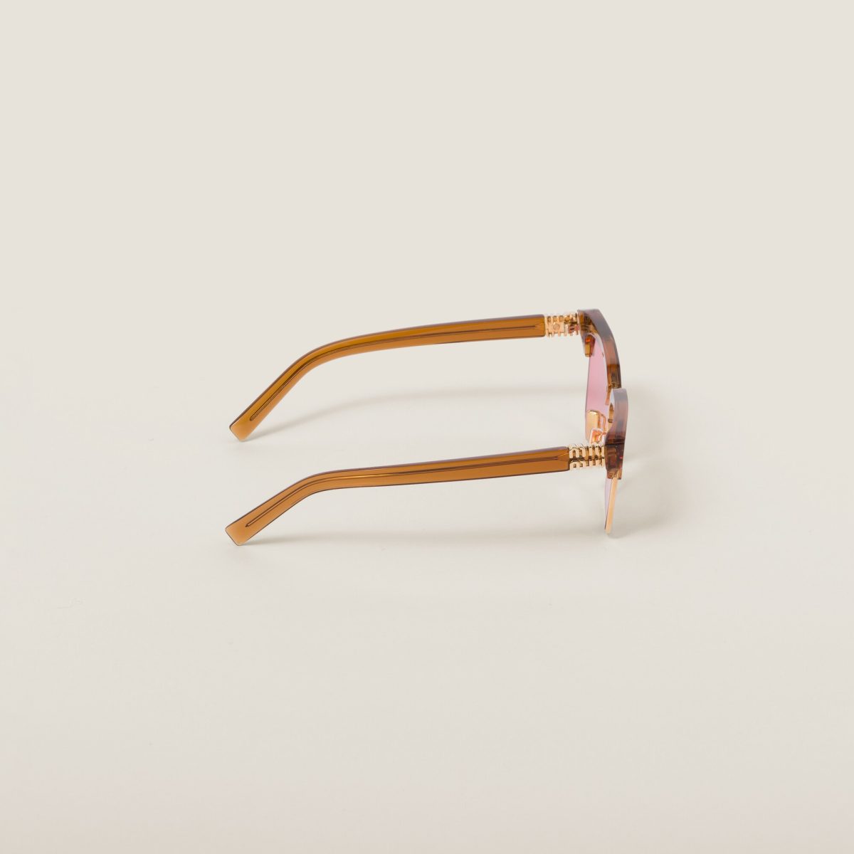 Iconic square sunglasses renewed with a modern touch. The acetate and metal frame is emphasized by captivating summery shades. The vertical Miu Miu logo decorates the straight temples.