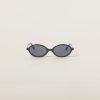 Acetate sunglasses with a sophisticated oval shape. The acetate frame has thin rims and ultra-flat lenses that highlight the extreme lightness. The vertical Miu Miu logo embellishes the temples with a refined touch.