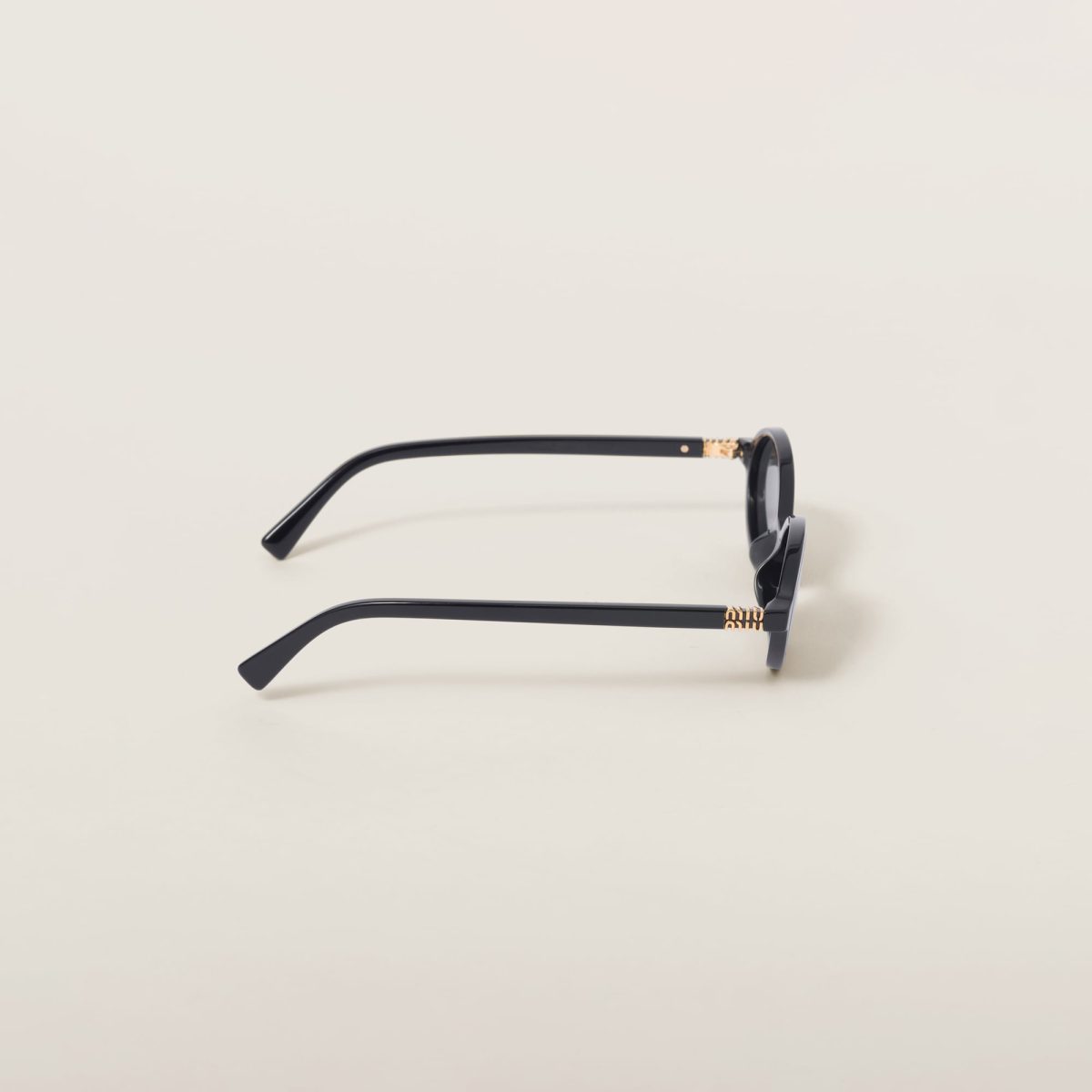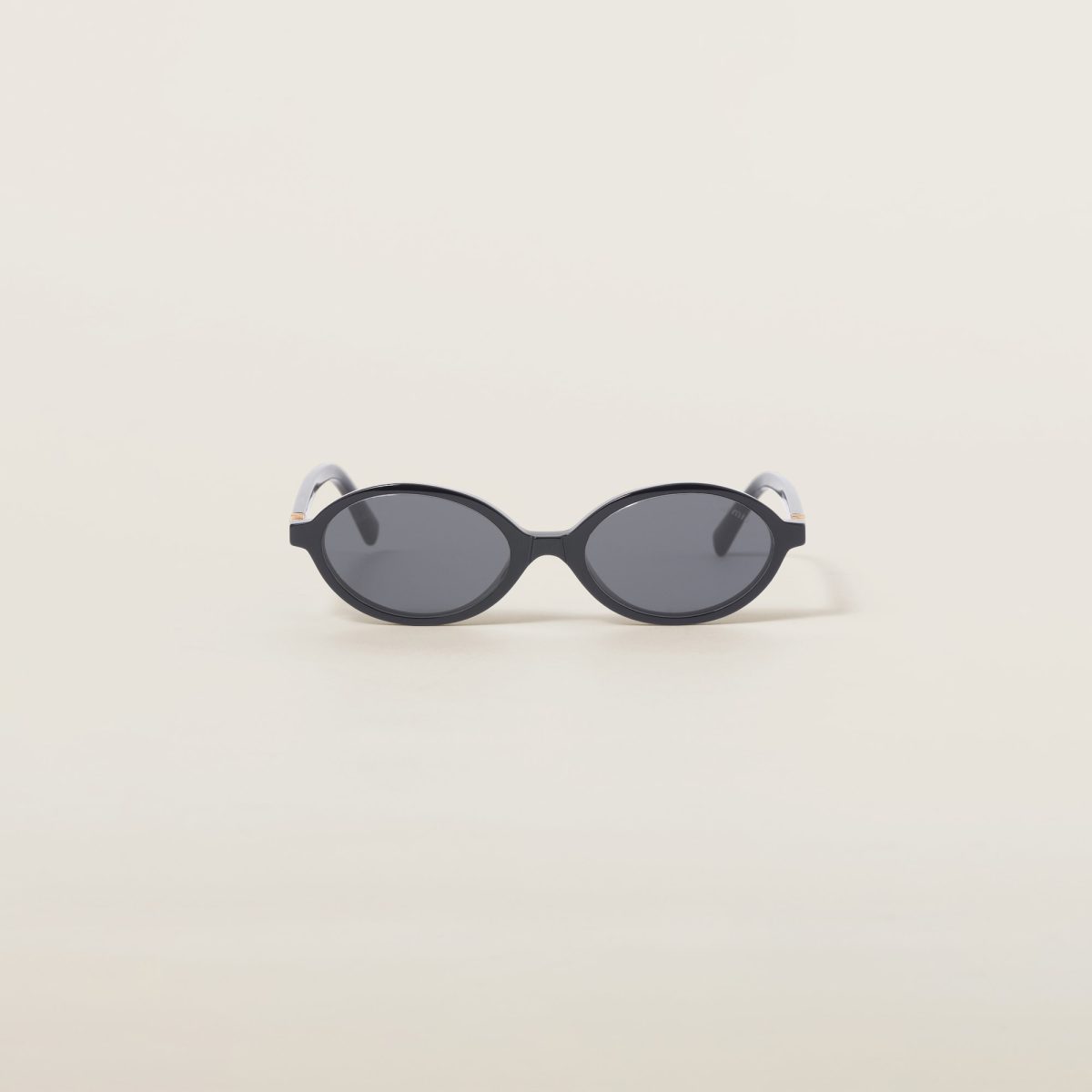 Acetate sunglasses with a sophisticated oval shape. The acetate frame has thin rims and ultra-flat lenses that highlight the extreme lightness. The vertical Miu Miu logo embellishes the temples with a refined touch.