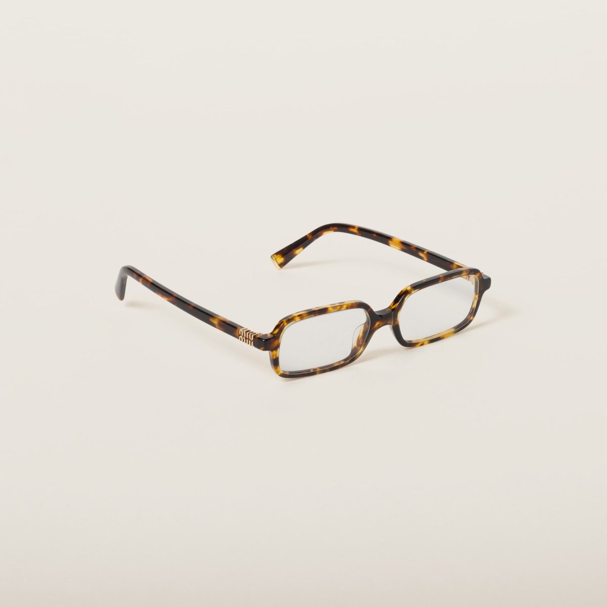 Acetate sunglasses with a sophisticated rectangular shape. The acetate frame has slim rims and ultra-flat lenses that ensure extreme lightness. The vertical Miu Miu logo decorates the temples, adding a refined touch.