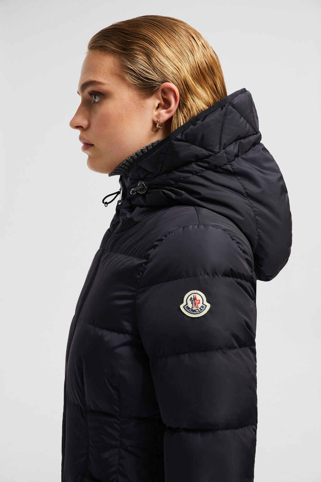 Sporty and elegant, the Avoce down jacket encapsulates the Moncler woman’s aesthetic. Water-repellent, recycled nylon technique provides protection, while recycled longue saison lining adds lightness to the short puffer. An adjustable hood and zipped pockets enhance practicality.