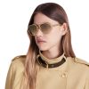 My LV Chain Pilot sunglasses combine a classic aviator silhouette with elegant detailing to create a feminine aesthetic. The pair feature chain-link temples that provide a jewel-like quality while exhibiting the House’s exquisite craftsmanship. LV Initials and Monogram Flowers are intertwined into the links for a romantic finishing touch.