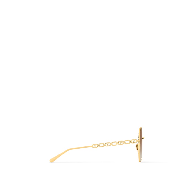 These My LV Chain Round sunglasses combine an oversized shape with delicate detailing to create an effortlessly feminine accessory. The chain link temples are expertly crafted to look like jewelry. Other fine details include elegantly placed LV Initials and Monogram Flowers inside of the chain links.