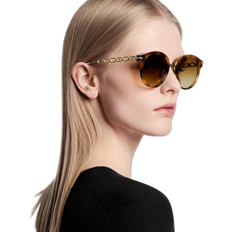 The new My LV Chain Two Round sunglasses combine a modern round shape with a sophisticated signature look. The lightweight acetate rims contrast with jewel-like temples in the form of delicately detailed chains inset with the LV Initials and Monogram Flowers. Its metal nosepads can be adjusted for a perfect fit and total comfort.